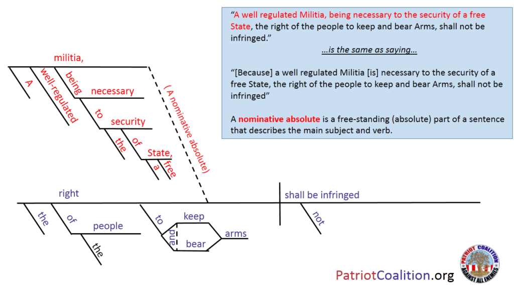 Like all sentences, the ability to understand this one lies in its grammar. While you don’t need to know the technical terms for it, the average reader can see that the subject and predicate stand on their own: “the right…shall not be infringed.” It is not dependent on the free-standing clause about the militia. This cannot be debated by anyone who holds a claim to rationality or reason. And in a constitutional republic such as ours, where the words of our foundational law have meaning, this should be the end if the “if you’re not part of a militia, you shouldn’t own a gun” argument. So why did the Framers include the clause? To ensure that the people understood why the amendment was so important. It is one of the few places in the Constitution where the reasoning is included in the text. This alone should make us sit up and pay attention!